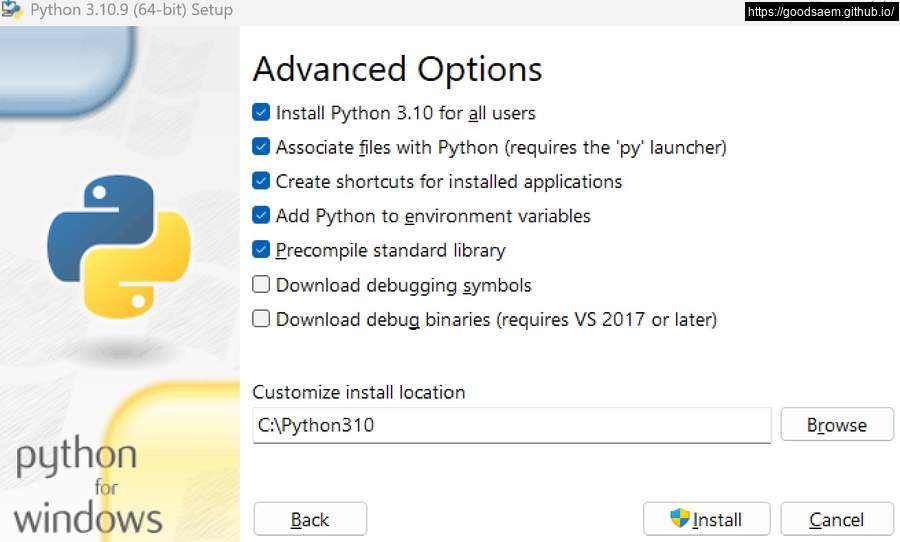 - 경로를 지우고 C:\Python310 부분만 남기고 지운다. 그리고 설치 진행